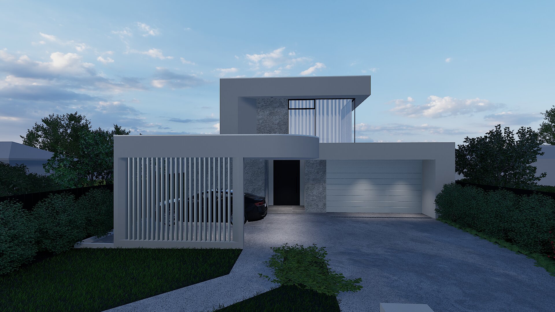 Located in Brighton, this modern, double-storey house is designed to offer both style and functionality. The exterior is a sleek, contemporary design with clean lines and large windows that allow natural light to flood the interiors. The facade is sophisticated and inviting, setting the tone for the rest of the property.